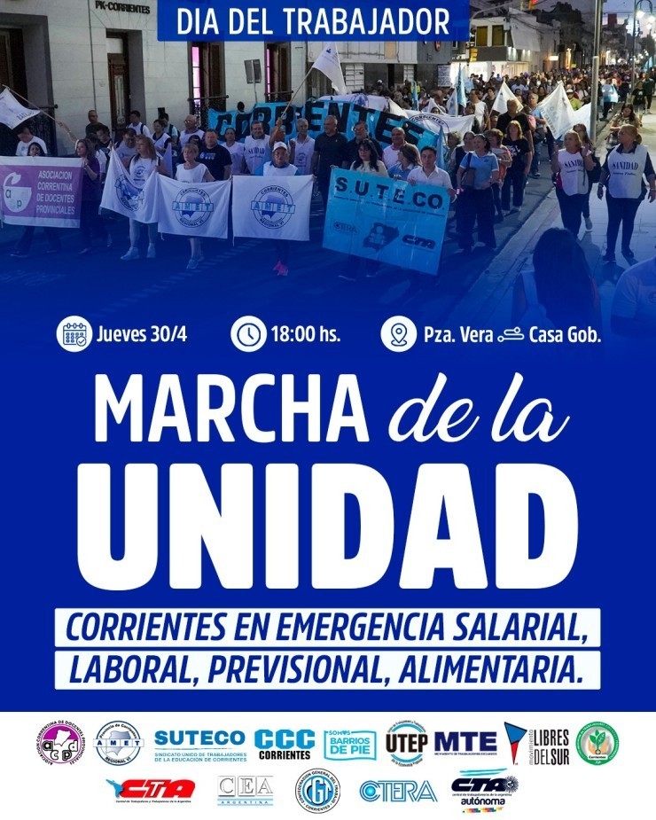 La movilización principal, impulsada por sectores gremiales como SUTECO, reunirá una amplia agenda de reclamos vinculados a la situación económica y social: aumento salarial en blanco, paritarias periódicas, rechazo a reformas laborales y previsionales, asistencia urgente a sectores vulnerables y medidas frente al crecimiento de la pobreza, la indigencia y el desempleo. También se exigirán respuestas ante el deterioro de servicios esenciales como salud y educación, y el impacto de recortes en programas sociales que afectan a miles de familias correntinas.